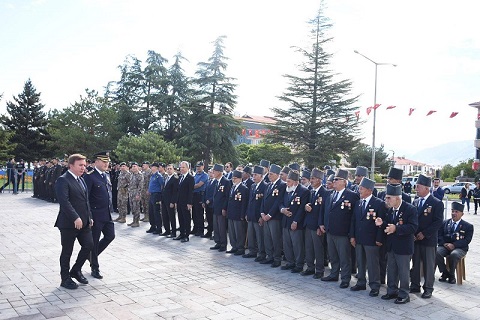 Törende konuşma yapan Türkiye Muharip Gaziler Derneği Erzincan Şubesi Başkanı Sabri Taş, günün anlam ve önemine dair yaptığı konuşmada şunları söyledi: “Bugün hepimiz için çok önemli bir gün. Kıvançla ve onurla kutladığımız bu güne geliş sürecimiz oldukça eskiye dayanıyor. Başkomutan Mustafa Kemal Atatürk önderliğinde Türk ordusu, Sakarya Meydan Muharebesi’nde Yunan ordusunu bozguna uğrattı. Ardından Dumlupınar’da bir kez daha mağlup edilen düşman, 9 Eylül 1922’de topraklarımızdan tamamen atıldı. Türk milleti adına Türkiye Büyük Millet Meclisi, 19 Eylül 1921 tarihinde bu büyük zaferin anısına Başkomutan Mustafa Kemal Atatürk’ü Mareşal rütbesine yükseltmiş ve Gazi unvanı ile ödüllendirmiştir. O tarihten bu yana, 2847 sayılı kanuna istinaden yayımlanan yönetmelik gereği 19 Eylül Gaziler Günü olarak kutlanmakta, 18 Mart ise Şehitler Günü olarak anılmaktadır.