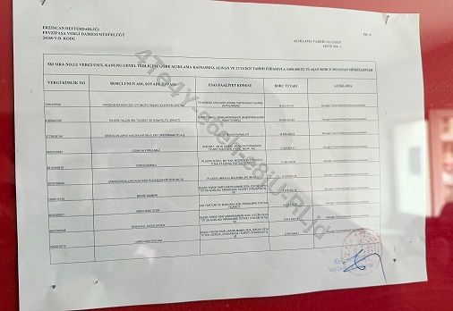 Erzincan’da da 5 milyon lira ve üzerinde vergi borcu ve cezası bulunan mükelleflerin yer aldığı liste, Erzincan Defterdarlığı Fevzipaşa Vergi Dairesi girişindeki panoya asıldı.