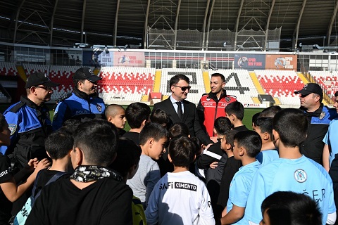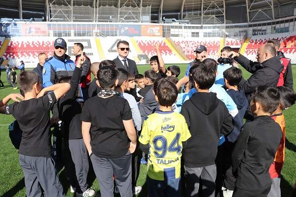 13 Şubat Şehir stadyumunda bir araya gelen Emniyet Değer Erzincan spor kulübü öğrencileri ilk olarak Erzincan İl Emniyet Müdürü Zafer Baybaba ile bir süre sohbet ettiler. Polis abi ve ablaları ile birlikte çalışma yapan minik öğrencilere asıl sürpriz aynı saatte idmana gelen 24Erzincanspor oyuncularından geldi.