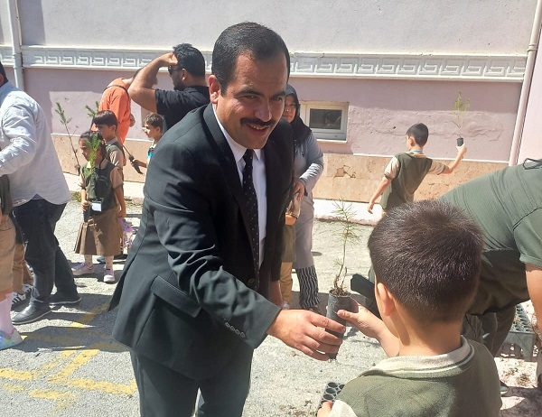 Erzincan Merkez İnönü Mahallesi Muhtarı Osman Toprak, yeni eğitim dönemi dolayısıyla ayrıca Tarım ve Orman İl müdürlüğünce getirilen çam ağaçlarını öğrencilere dağıttı.