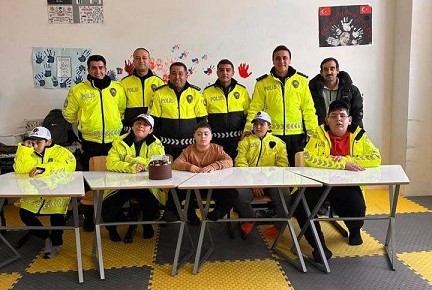 Erzincan İl Emniyet Müdürlüğü Bölge Trafik Denetleme İstasyon Amirliği personeli tarafından “3 Aralık Dünya Engelliler Günü” kapsamında; Refahiye Yatılı İlköğretim Bölge Okulunda (YİBO) öğrenim gören öğrenciler ziyaret edildi.