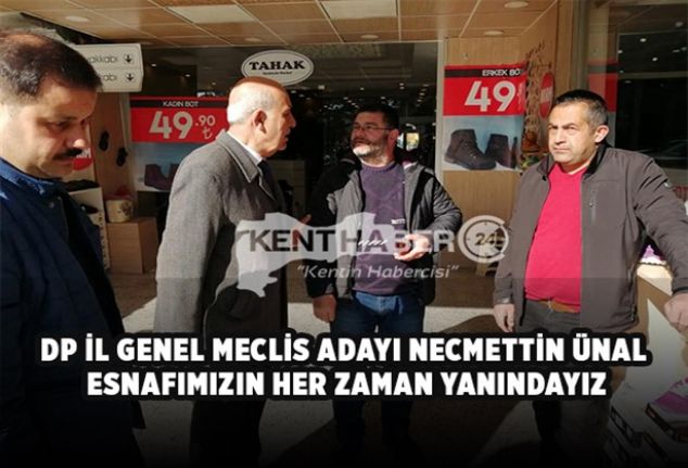 Demokrat Parti(DP) İl Genel meclis üyesi adayı Necmettin Ünal, seçim çalışmaları sürdürüyor. Seçim çalışmaları kapsamında esnaf ziyaretlerinde bulunan Ünal, esnaflıktan geldiğini ve esnafın sorunlarını çok iyi bildiğini belirtti.İl Genel meclis üyesi adayı Necmettin Ünal, seçim çalışmaları sürdürüyor. Sanayi esnafı ile bir araya gelen Ünal, seçim çalışmaları hakkında yapmayı düşündükleri projeleri esnafa anlatarak görüş alış verişinde bulunuyor. Gösterilen ilgiden memnun kaldığını ifade eden Ünal, her zaman esnafın yanında olduğunu ve seçilmesi halinde yine esnaf ile birlikte olacağını ifade ederek, gösterilen ilgiye teşekkür etti.