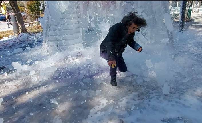 Şimdiye kadar şiddetin her türlüsüne karşı çıkan ve onu eleştiren işler üreten Güzel Sanatlar Fakültesi Dekanı Prof. Dr. Mehmet Kavukcu, bu sefer kadına şiddeti eleştiren bir iş yaptı. Erzincan merkez Barış Manço Parkı’nda kurduğu 13 metrelik piramidal enstalasyonunu buz tutturarak adeta kadına şiddeti o buzların arasına hapsetti.